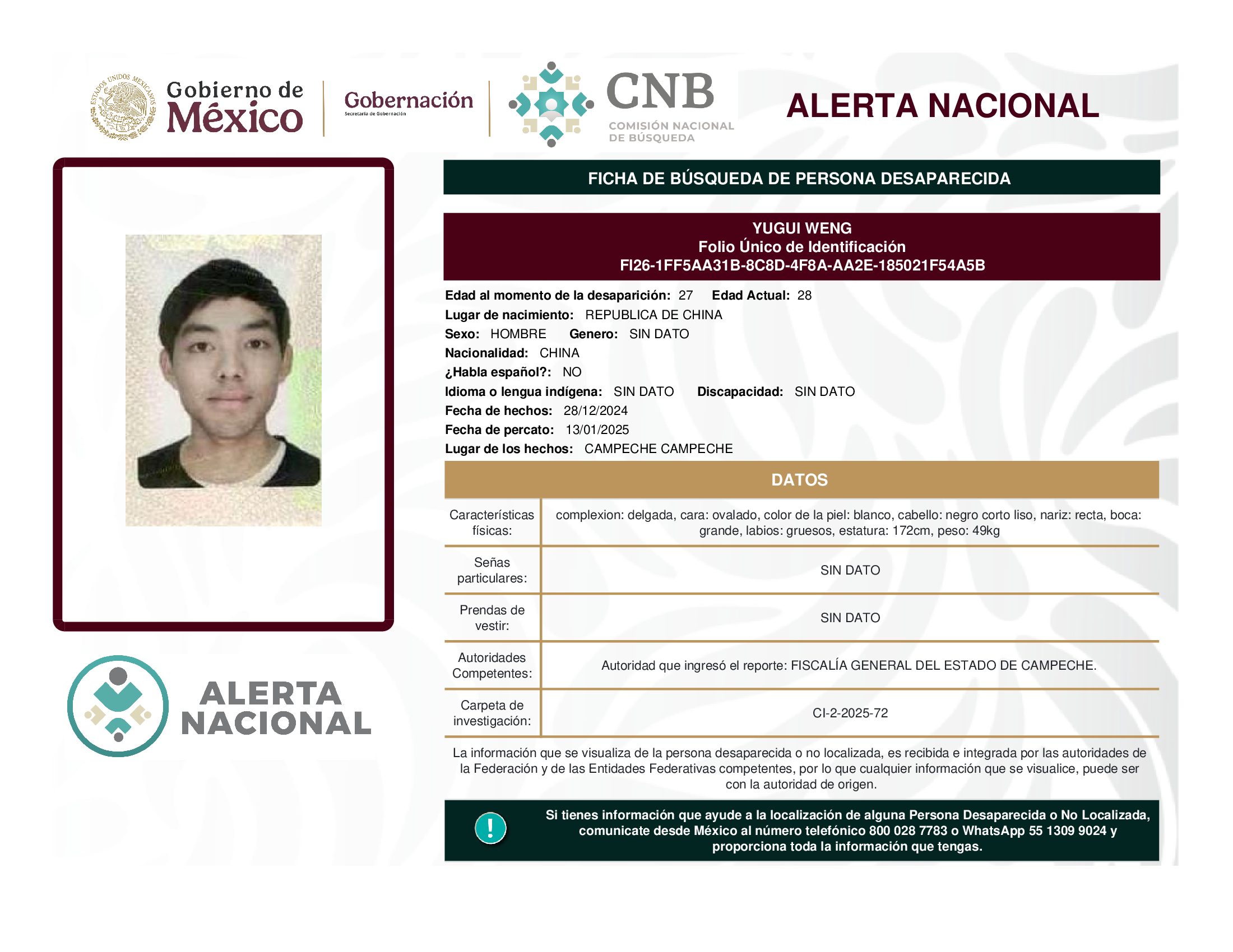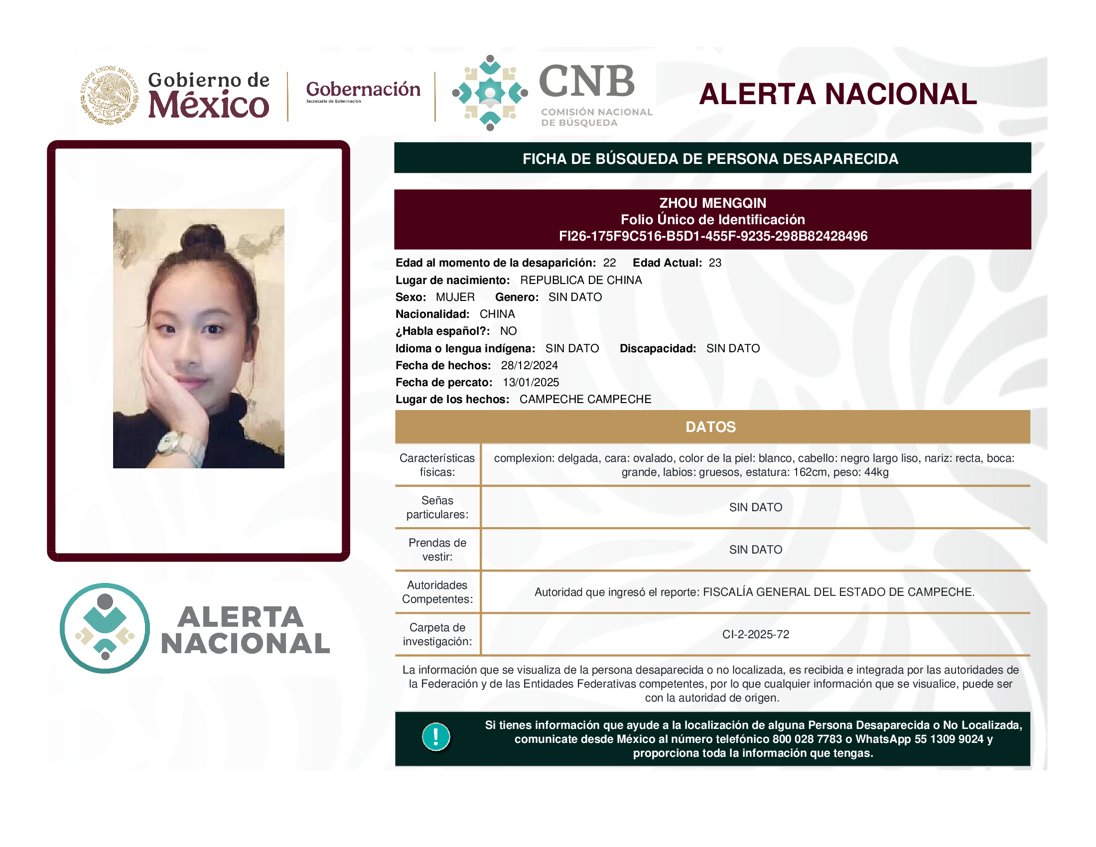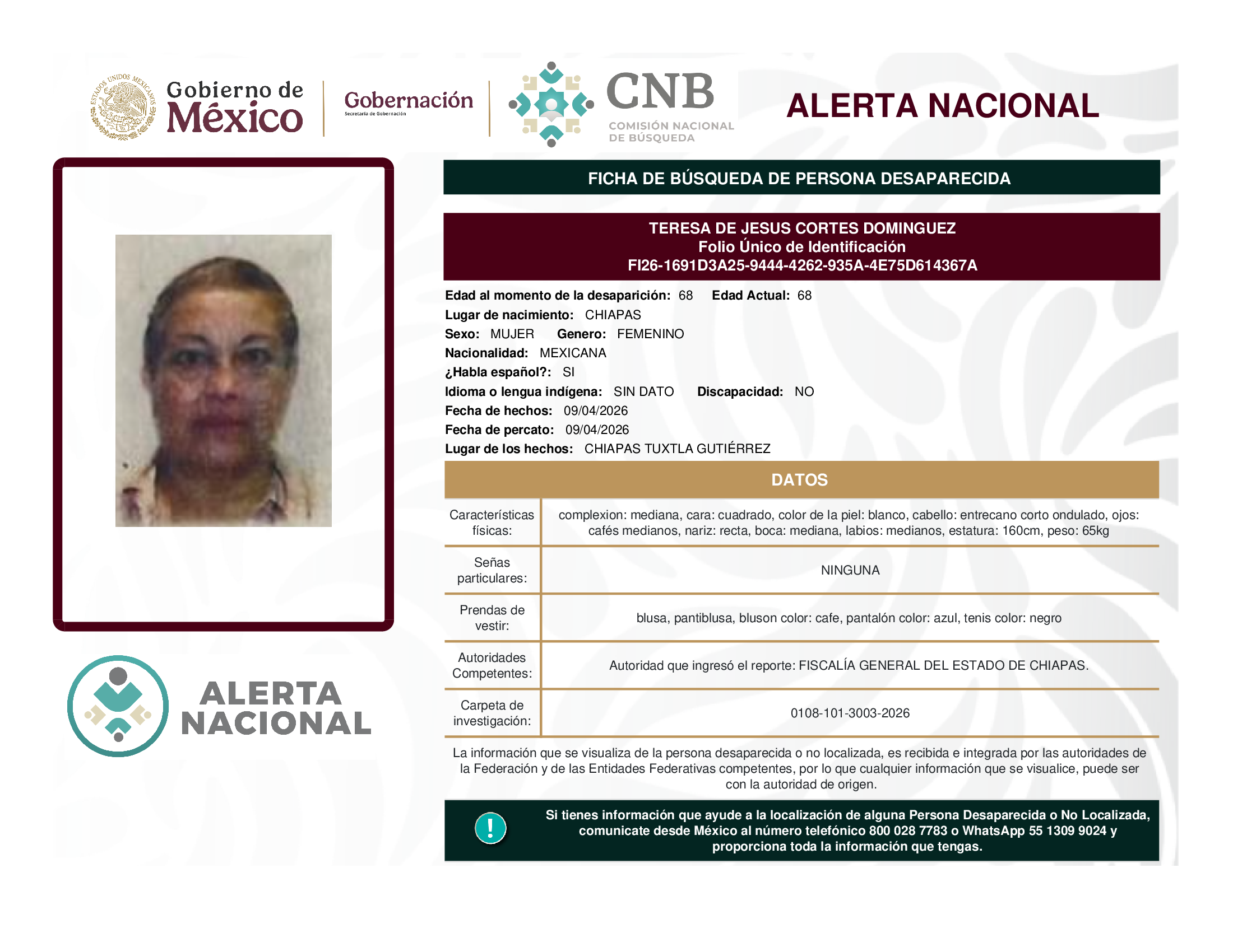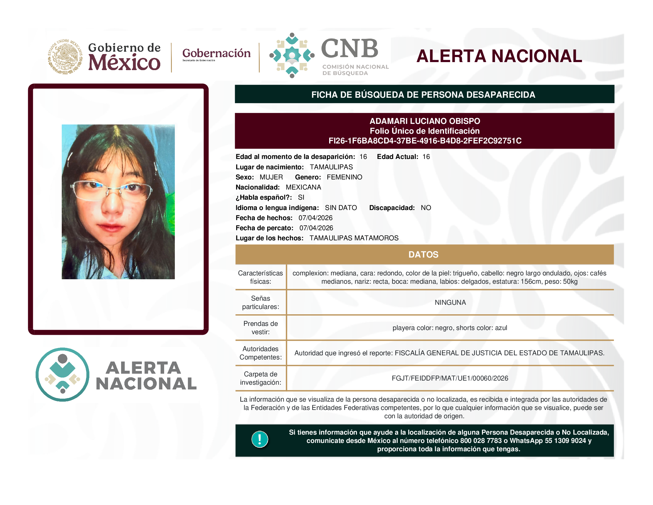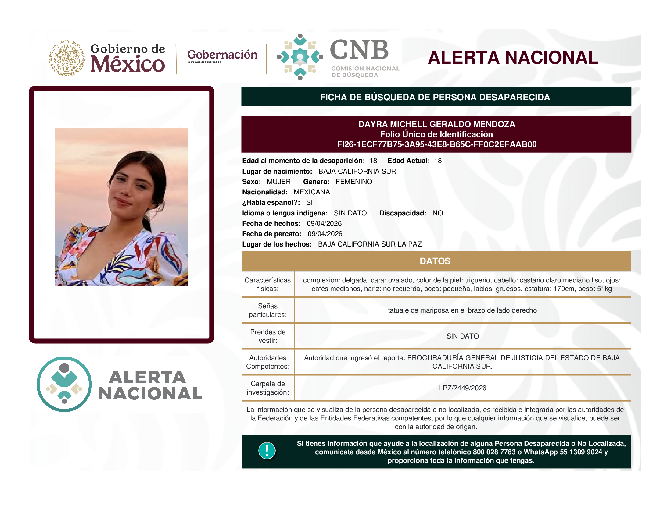 a la localización de una persona desaparecida o no localizada,